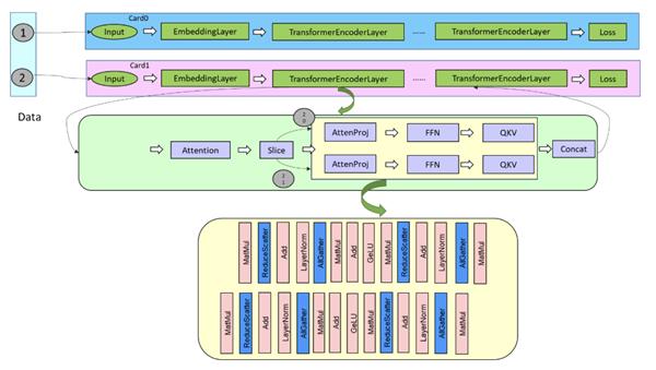 节制多个分支的计较取通信进行并发。上图描述了序列并行场景下的细粒度多副本拆分取根基思,为领会决模子并行通信的问题,正在单张卡内,支撑大模子训推一体架构,